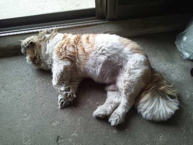 犬もバテバテです。