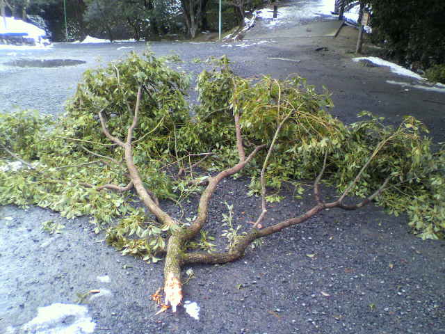 大雪は大きな木も、このようにしてしまいます。