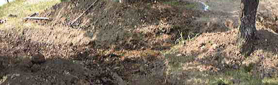 地盤が固いのでツルハシ、スコップで打てども掘れども、